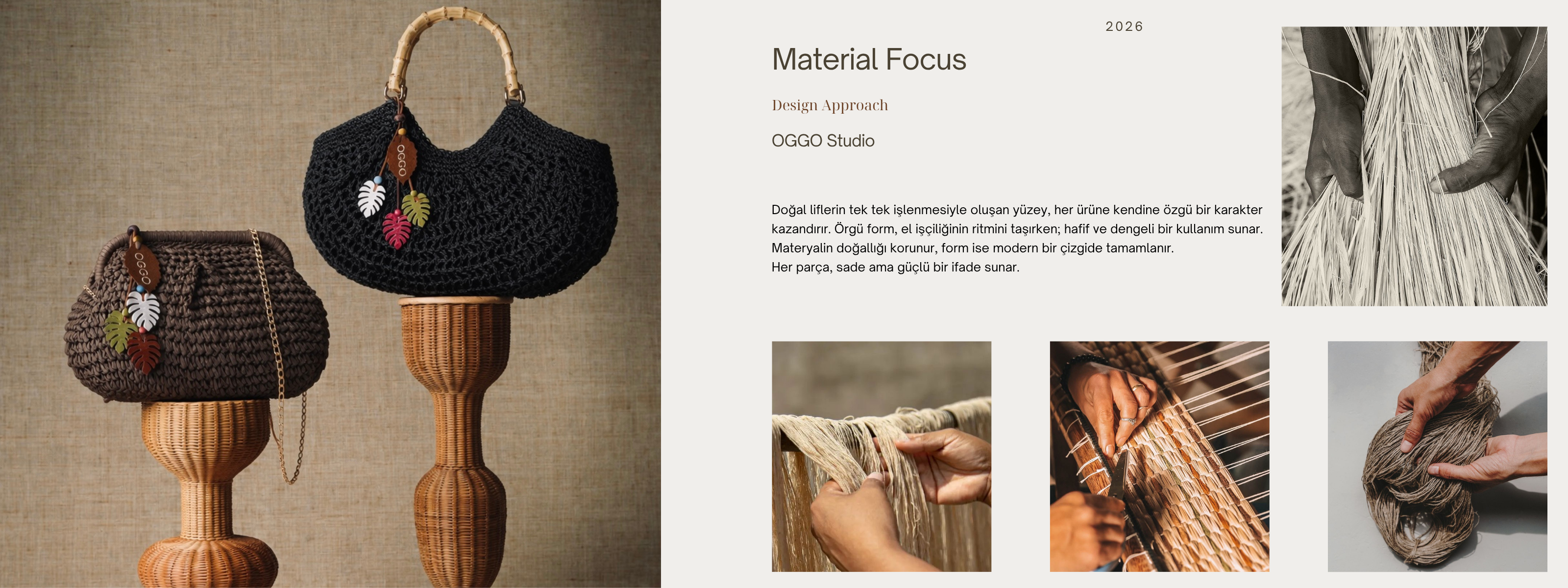 OGGO Hasır El & Çapraz Çanta - Deri Saplı